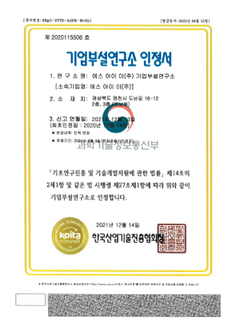 기업부설연구소 인증서