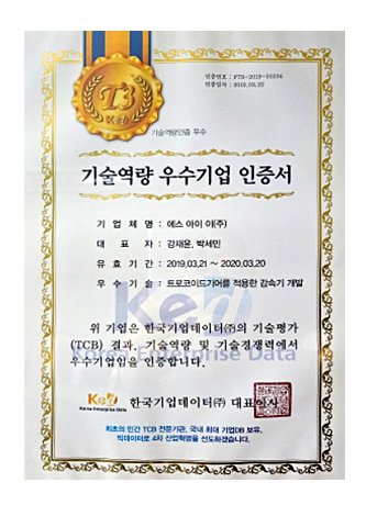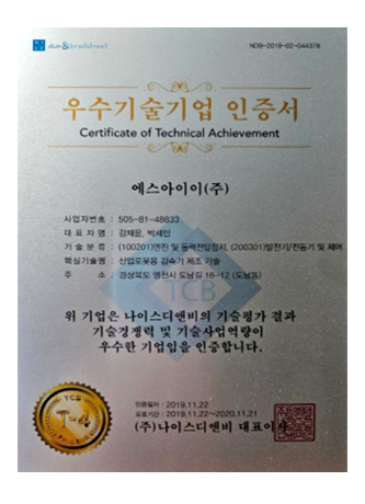 기술역량 우수기업 인증서